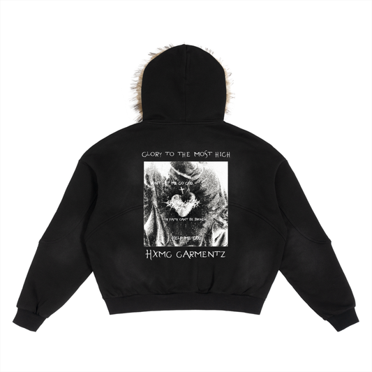 DAT FAKE MINK-Sun Fade Boxy Detachable Fur Hoodie